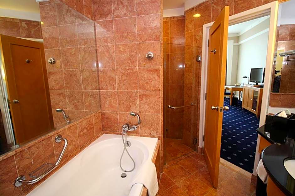 This spacious suite is consisted of of 1 living room, 1 separate bedroom and 1 bathroom with a bath and bathrobes. The air-conditioned suite offers a flat-screen TV with satellite channels, a mini-bar, executive lounge access, a wardrobe as well as garden views. The unit offers 1 bed.